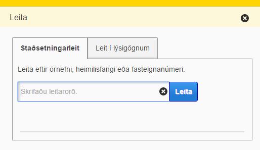 Í leitarglugganum er hægt að leita eftir staðsetningu, eins og sést á myndinni hér fyrir neðan: