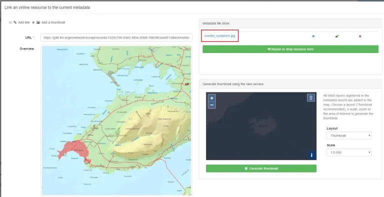 Einnig er hægt að vista smámyndir á server og vísa á þann stað (sjá mynd hér fyrir neðan). Mælt er með https slóð (ekki http). Þegar rétt slóð er sett inn, þá birtist smámyndin. Ef ekki þá er það merki um að slóðin sé ekki rétt.