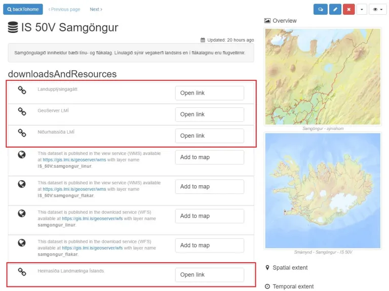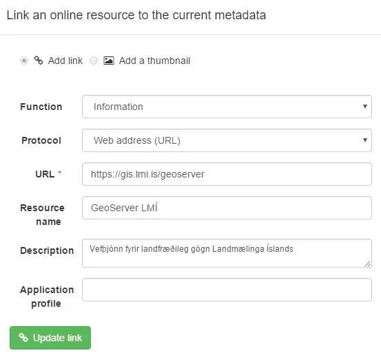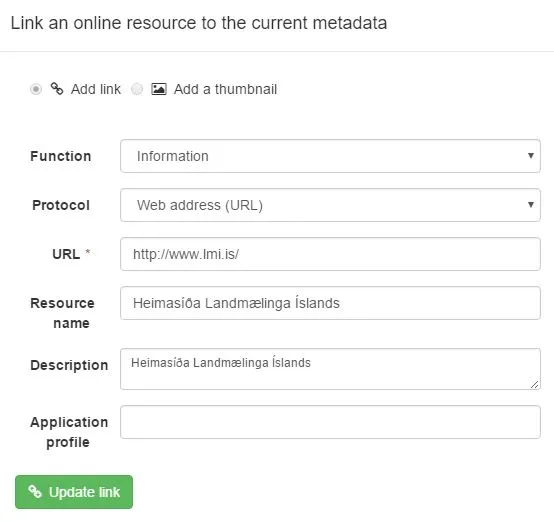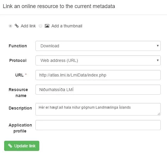 Tenging við Landupplýsingagátt. Athugið að útbúa slóð eins og lýst er í kaflanum Tengja við gögn í Landupplýsingagátt .