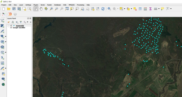 Punktarnir komnir inn á kortið og hægt að byrja að greina þá frekar.
